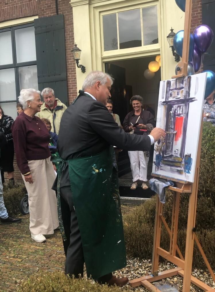 De opening werd verzorgd door wethouder Wim Oosterwijk; hij kreeg een schilderschort om en mocht zelf palet en kwast ter hand nemen als officiële openingshandeling. Zie ook het bericht in de Barneveldse Krant en de foto hier op de pagina.