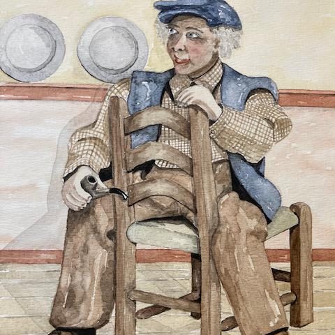 Mijn naam is Joke Overeem. Schilderen, mijn grooste hobby! Strandjutter Bram Koorn van Texel was bij nacht en ontij op het strand te vinden. Dit, als liefhebber van Texel, was super om mee bezig te zijn. Het is met acrylverf geschilderd.