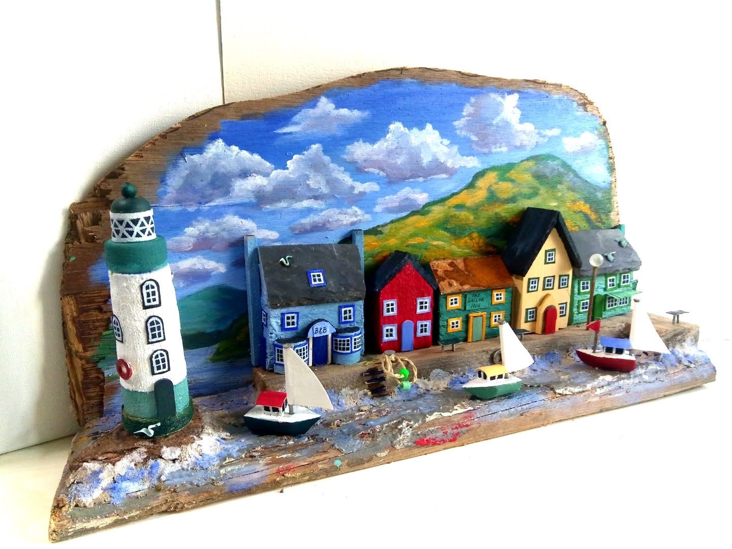 Ik ben Ineke van Dijk en naast schilderijen maak ik vissersdorpjes, vuurtorens, huisjes en kerken van drijfhout en gerecycled hout.
