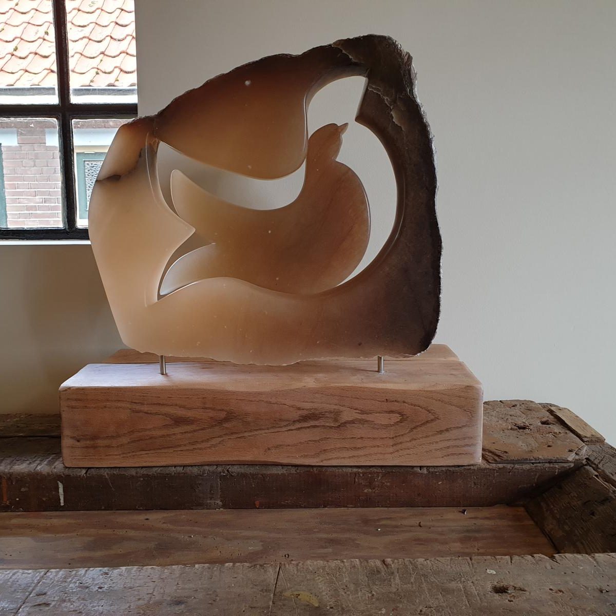 De eerste steen die ik zelf heb bewerkt kreeg ik van mijn oudere zus, maar het heeft eerst wel wat voeten in de aarde gehad om deze te bewerken en een mooie vorm te geven . Dus je kunt wel zeggen dat ik met vallen en opstaan toch wel het bewerken van deze steensoorten nu enigszins zelf heb aangeleerd. Mijn beelden zijn meestal abstract van vorm. Ik heb zelf ook een keer een expositie gehouden op mijn werk nadat iemand mij vroeg of ik dat een keer wilde doen.
