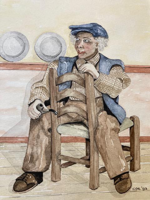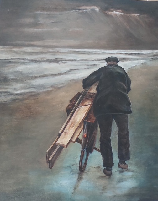 Mijn naam is Joke Overeem. Schilderen, mijn grooste hobby! Strandjutter Bram Koorn van Texel was bij nacht en ontij op het strand te vinden. Dit, als liefhebber van Texel, was super om mee bezig te zijn. Het is met acrylverf geschilderd.