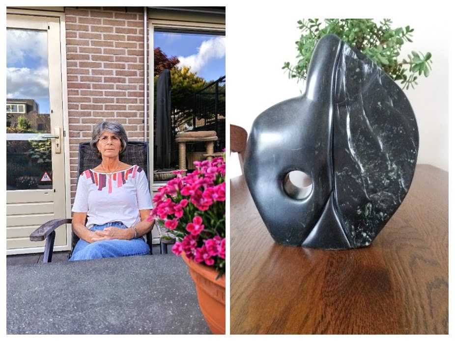 De eerste steen die ik zelf heb bewerkt kreeg ik van mijn oudere zus, maar het heeft eerst wel wat voeten in de aarde gehad om deze te bewerken en een mooie vorm te geven . Dus je kunt wel zeggen dat ik met vallen en opstaan toch wel het bewerken van deze steensoorten nu enigszins zelf heb aangeleerd. Mijn beelden zijn meestal abstract van vorm. Ik heb zelf ook een keer een expositie gehouden op mijn werk nadat iemand mij vroeg of ik dat een keer wilde doen.