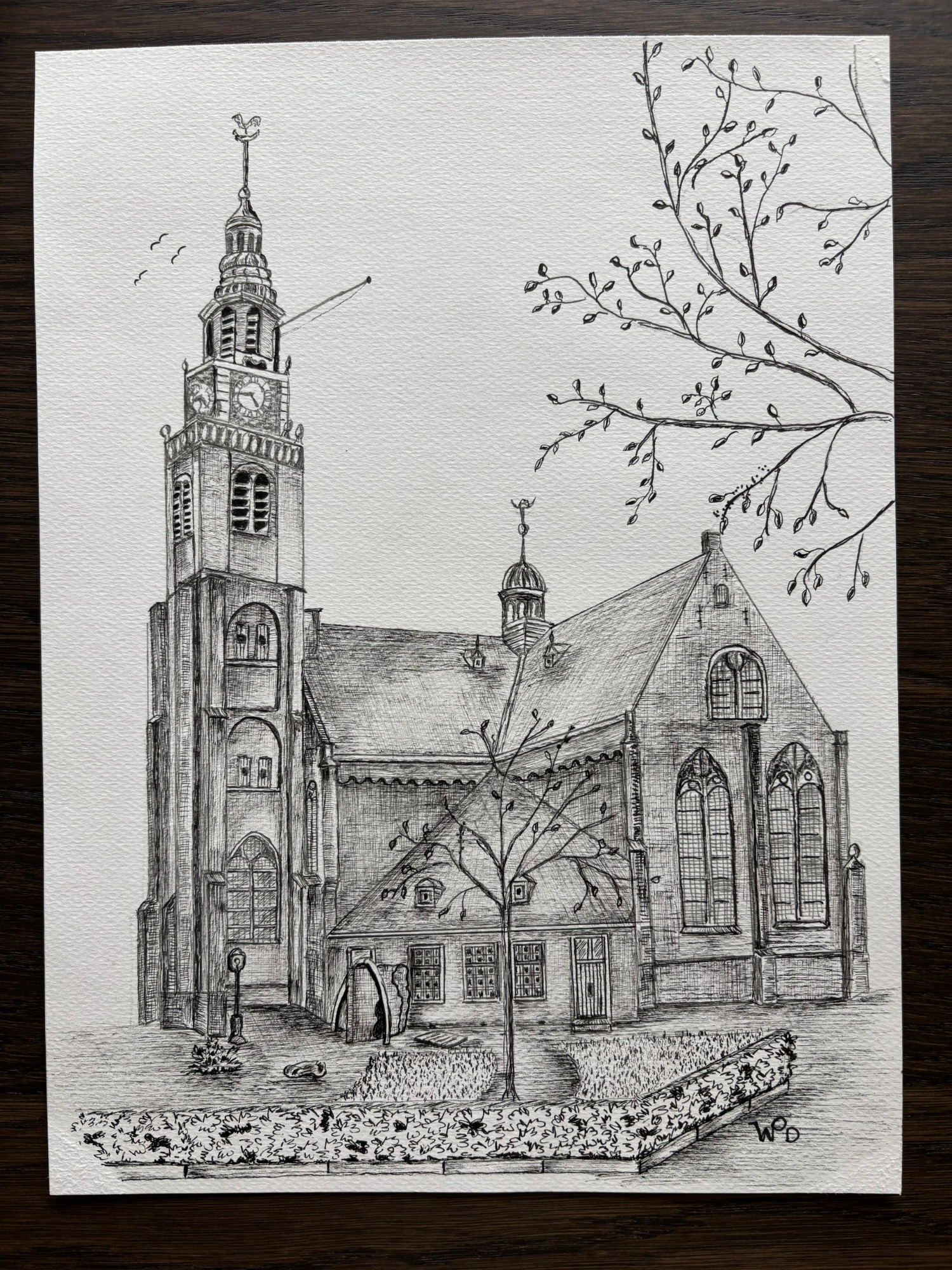 Dit werk is een pentekening van de Grote kerk in Maassluis.