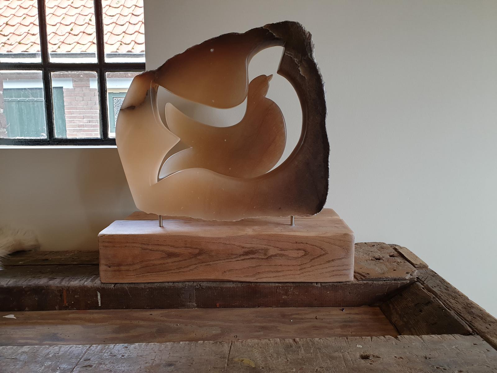 Mijn naam is Agnes Ruiter en ik ben woonachtig in Voorthuizen. Ik ben in contact gekomen met het beeldhouwen tijdens een expositie die bij op mijn werk werd georganiseerd. Zelf was ik altijd al gefascineerd door beelden van steen of hout die door mensen zelf waren gemaakt. Dus heb ik contact opgenomen met diegene die bij ons exposeerde en ben bij haar op cursus gegaan om mij te verdiepen in het bewerken van voornamelijk Speksteen en Seleniet. Deze zijn niet te hard, maar zacht genoeg voor handgereedschap.