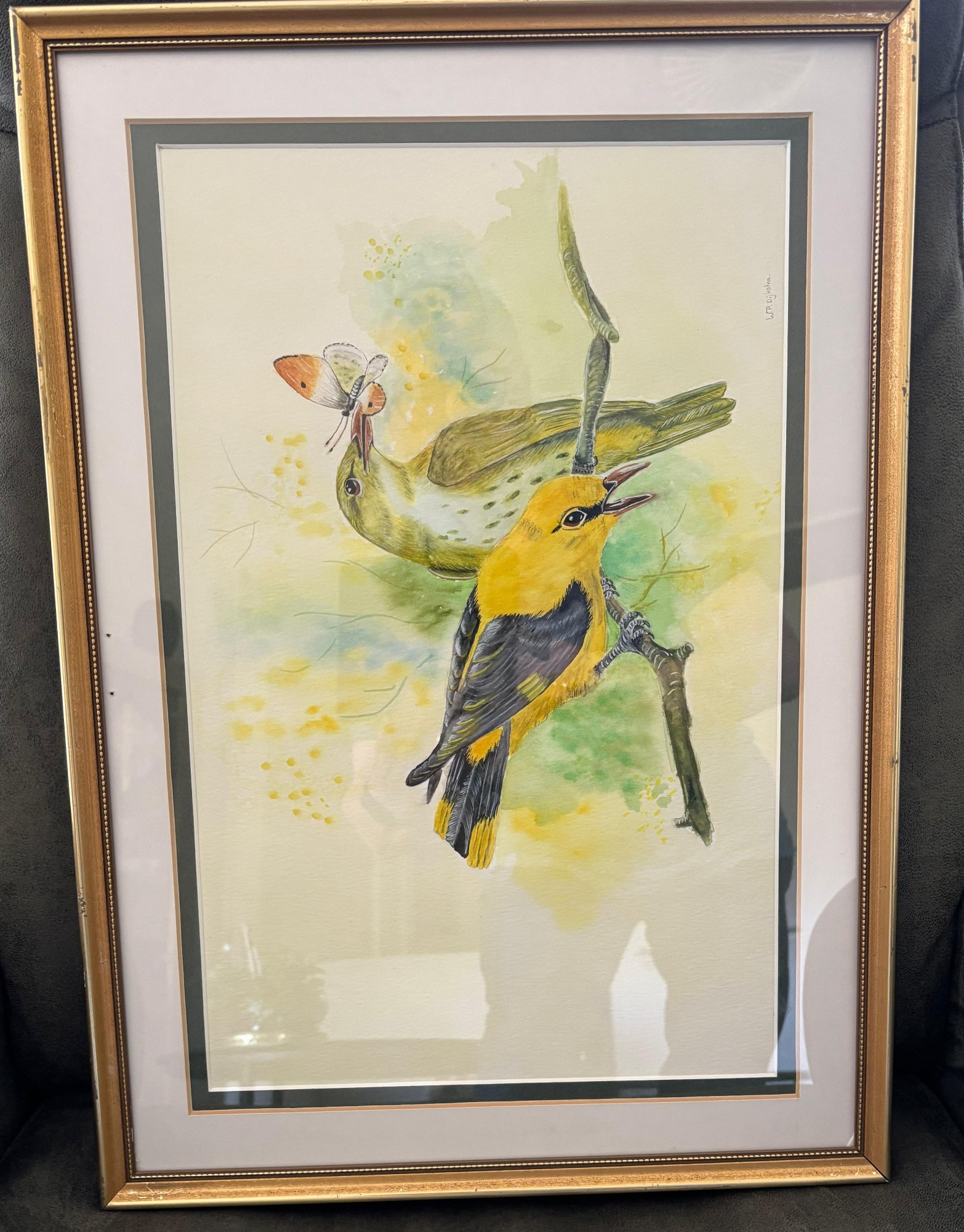 Het werk hier afgebeeld is van wielewalen in aquarel.